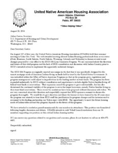 Letters Show files Loading UNAHA_Letter_Sami_Jo Download UNAHA_Letter_HUD_184_Secretary_rev1 Download reviewrevisedconsultation11-12-14 Download Letter_to_Board_of_Directors Download Letter_from_NAIHC_to_HUD_Secretary_Ben_Carson Download LetterofInterest Download image6416 Download Hud_Response_Letter_Oct-2014 Download drafttriballeaderletternov2014 Download Ben_Carson-HUD_Secretary_Letter Download